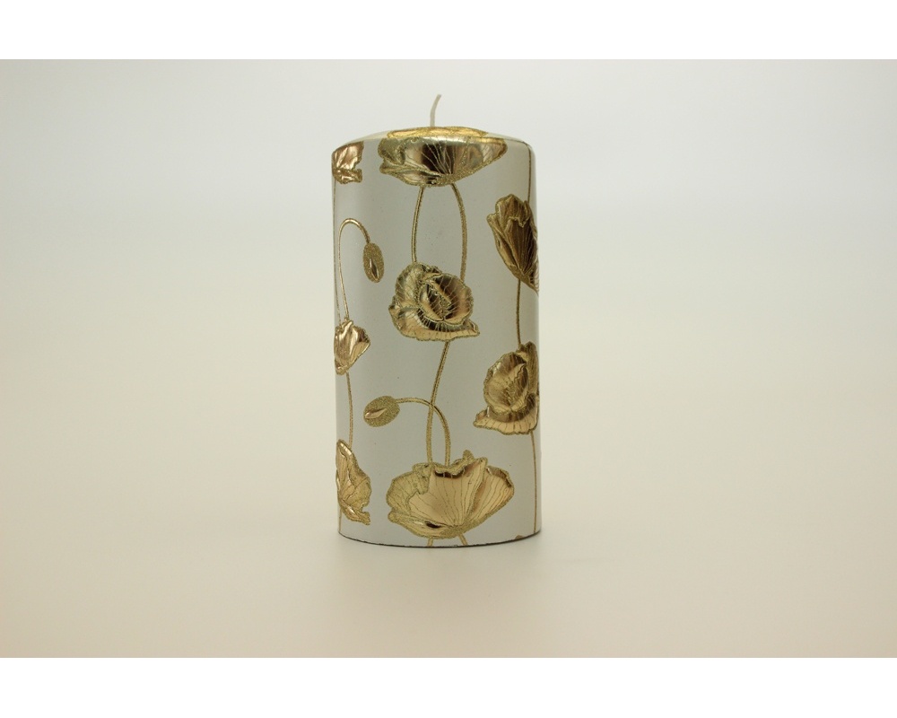 La candela PAPAVERI ORO è interamente realizzata a cera anche nelle decorazioni esterne più fini grazie alla tecnica dell'avvolto. La candela Papaveri oro valorizza qualsiasi tavola. Da sola o insieme al suo tris è un centrotavola che valorizza, senza compromessi, ogni pranzo o cena; accesa o spenta è comunque uno speciale oggetto di arredamento che non smetterete mai di osservare insieme ai vostri ospiti. Ideale sul tavolo di Natale e Capodanno.Disponibile anche nelle versione media e piccola. Dimensioni: diametro 20 cm x h 6 cm.Confezione: in scatola regalo nera CERERIA PERNICI è un'azienda artigianale italiana specializzata nella produzione di candele di qualità. Ogni candela è realizzata da artigiani che con la loro manualità rendono ogni pezzo uguale agli altri ma allo stesso tempo irripetibile per i particolari decori e le lavorazioni realizzate.LA TECNICA DELL'AVVOLTO. Le decorazioni e i colori delle candele "fasciate" sono realizzati con la tecnica dell'avvolto. Questa tecnica, nata negli anni sessanta grazie alla creatività e all'opera di innovazione di Domenico Pernici, consente di stampare in rilievo disegni, decori e colori su una base di cera sottilissima anche goffrata. Questa diventa parte integrante della candela
