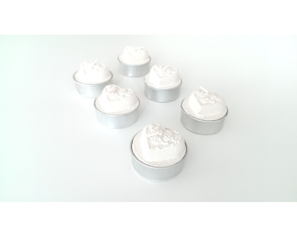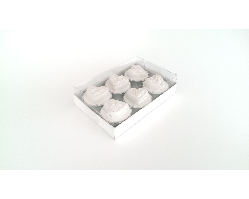 Candele tealight cuore, lavorate con finitura opaca