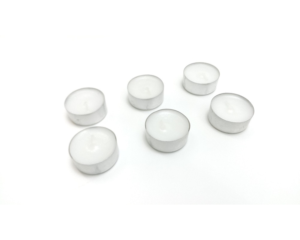Candele tealight su piccolo contenitore in alluminio, da utilizzare in qualsiasi ambiente in occasioni nelle quali si vuole ricreare una luce soft e un'atmosfera non impegnandosi con candele grandi. La loro semplicità richiede che siano utilizzate all'interno di un supporto portacandela.