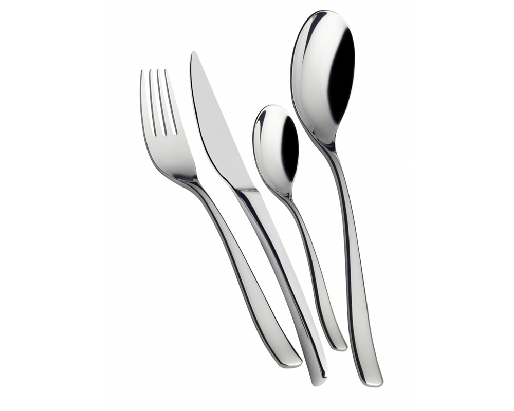 Posate dal design moderno e una linea morbida e delicata. L'acciaio inossidabile lucido ne esalta le forme.