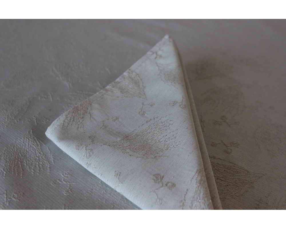 VALENTINA è un tovagliolo elegante con ricami filo oro (sottili ramoscelli). E' un originale prodotto italiano cucito a mano, con base neutra beige (molto chiaro) e una fantasia di ramoscelli filo oro. Particolarmente adatto a pranzi e cene formali nelle quali si vuole preparare la tavola in modo elegante utilizzando calici e piatti bianchi o con decori. Le posate possono avere un manico inox magari con decori o filetti oro. Per completare al meglio la tavola si consiglia la tovaglia della stessa linea. Ideale in ricorrenze quali Natale, Pasqua, battesimi o semplicemente quando volete celebrare in modo impeccabile una occasione importante.